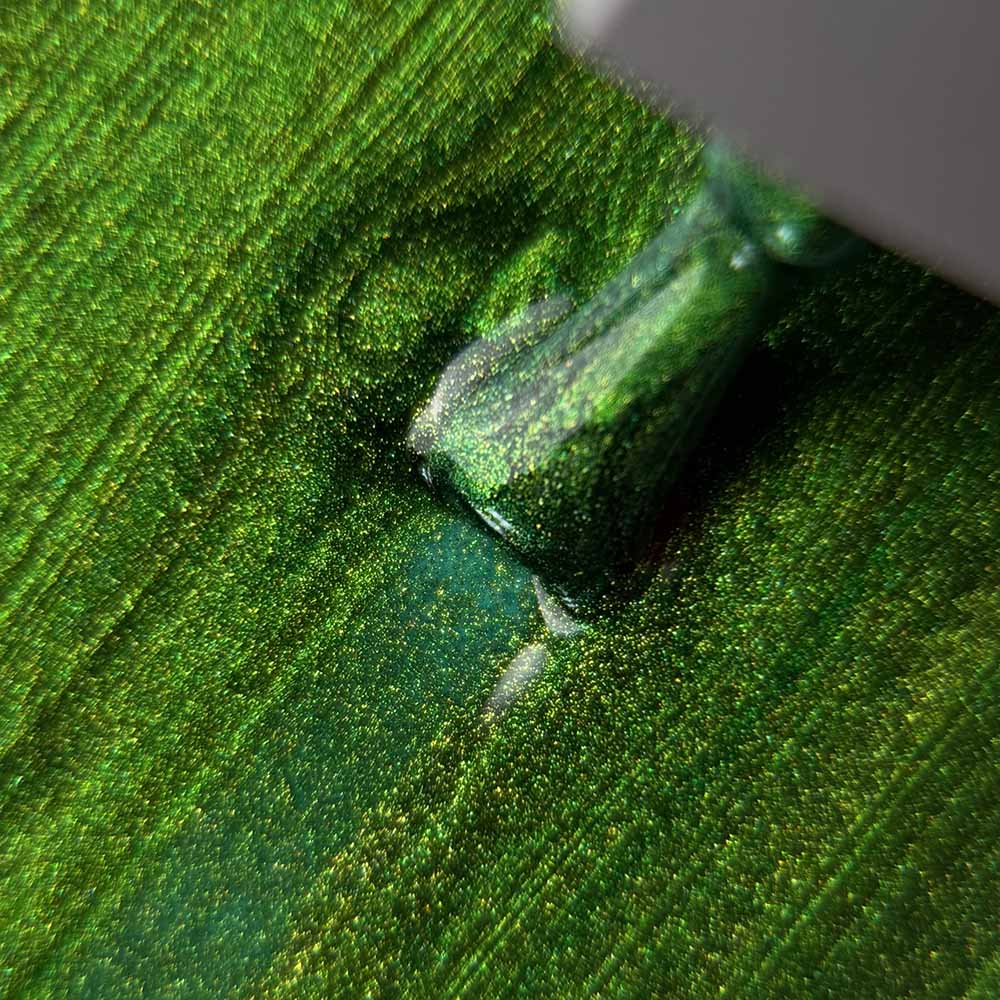 Неймовірний колір! Гарно виглядає і на чорній і на молочній підложці, і під глянцем і під матовим топом! Добре реагує на магніт. Дуже задоволена покупкою.
