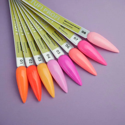 Профессиональный пигментированный гель-лак TUFI profi Summertime — это сочетание насыщенного цвета, удобной консистенции и длительной стойкости. Благодаря плотной пигментации он обеспечивает полное покрытие уже в 1–2 слоя. Summertime — новая коллекция гель-лаков, созданная специально для весенне-летнего сезона. Она объединяет в себе яркость и сочность оттенков с лёгкой, воздушной атмосферой тёплого времени года. Это палитра актуальных цветов, вдохновлённая модными трендами и сезонными коллекциями Pantone. Summertime — это палитра эмоций, навеянных природой, солнцем и стилем.