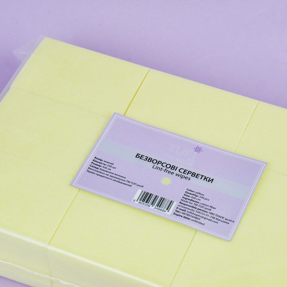 Безворсовые салфетки TUFI profi Жёлтые 4x6 см 540 шт (0104416)